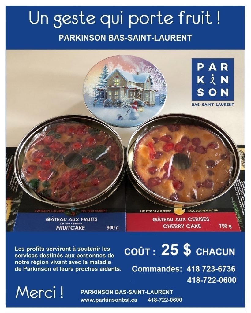 À l’approche de la période des Fêtes, la Campagne de gâteaux aux fruits de Parkinson Bas-Saint-Laurent bat son plein !
